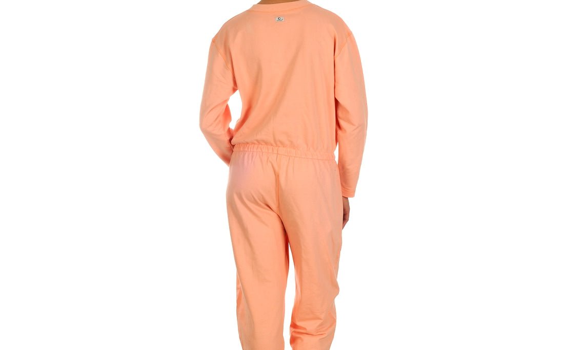 Features include: Zippered leg opening, V-neck, long sleeves, long legs, and elasticated waistband.